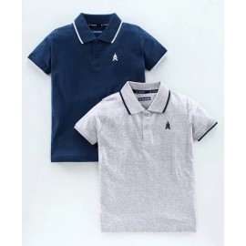 Pine Kids Half Sleeves Bio Washed Polo T-Shirt Pack of 2 - Blur & Grey